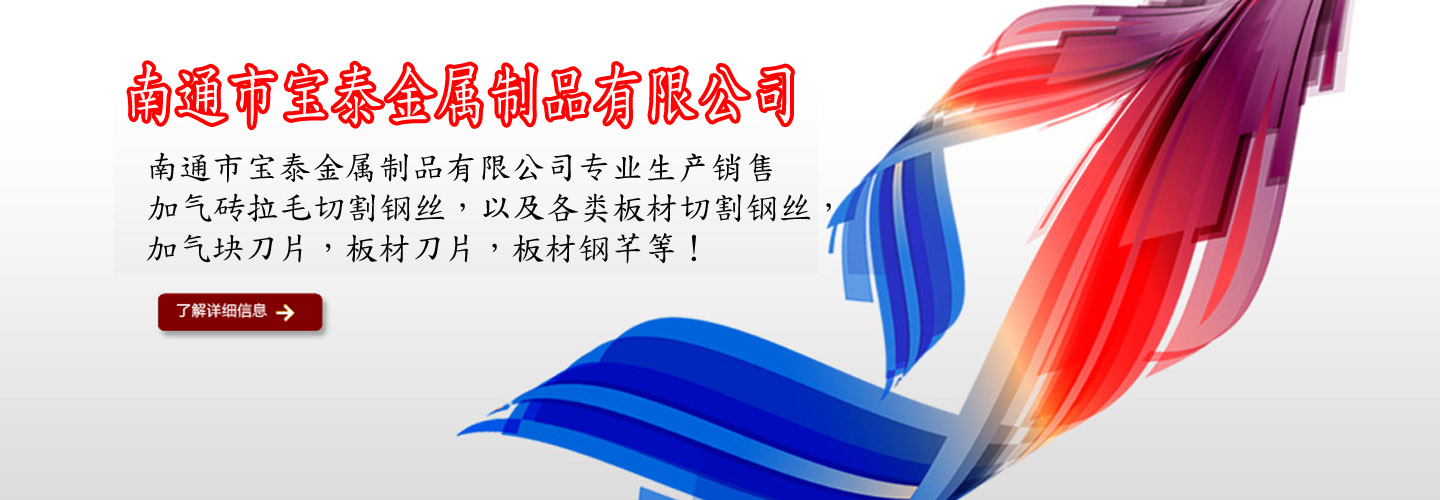 南通市寶泰金屬制品有限公司專業生產銷售加氣磚拉毛切割鋼絲,以及各類板材切割鋼絲,加氣塊刀片,板材刀片,板材鋼芊,在原有的加工工藝基礎上,對加氣磚切割鋼絲做了專業改進,形成以下優點: 1.形成拉鋸式切割、切割容易、切割精度好; 2.產品之間無粘連、切割出口不蹦邊; 3.提高了合格率; 4.方便施工、易粉刷、增強粘結力、避免了墻體與粉刷層之間的空鼓現象、增加砌塊間的抗剪切力......【查看更多】